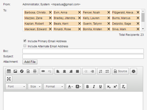 Note: If you send the same (or a similar) email message repeatedly during the school year, create an email template. You can edit the template's message and recipients, as needed, each time you use it.
