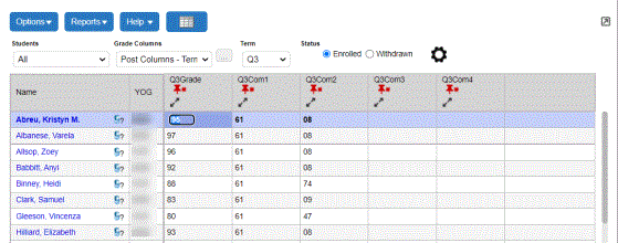 If a teacher enters and posts incorrect grades for students in a class, an office staff member can delete the post, and teachers can re-enter and re-post the grades in the Staff view.