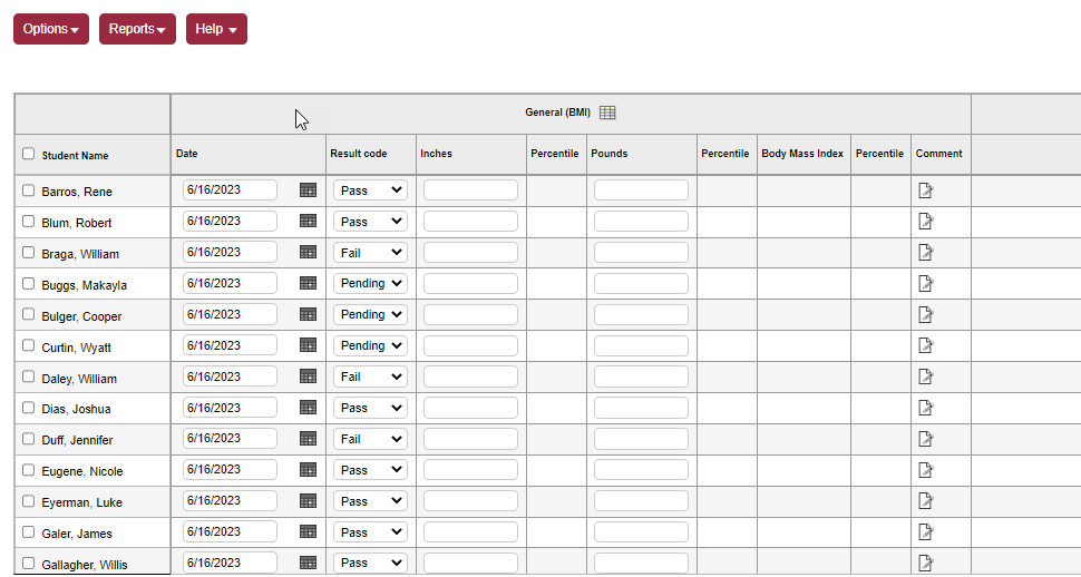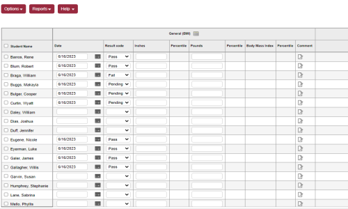 1. From the Options menu, click Delete. The student's name remains, with the screening data removed.