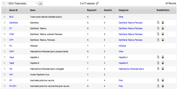 - Click the Immunization tab. The Series Definitions page appears:
