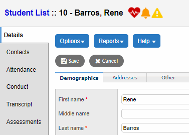 - Click Save. The system displays the appropriate icon next to the student’s name on the Student pages.