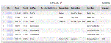 4. Click the Visits side-tab. Visits the student has made to the health office appear.