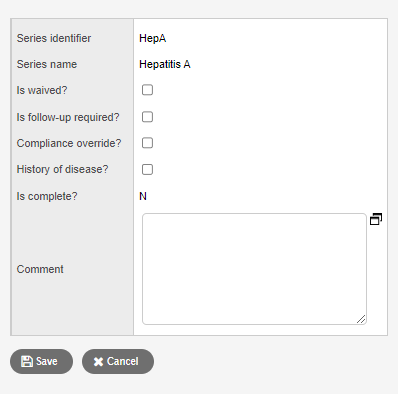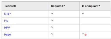 - In the Series ID column, click the immunization you want to override. The Series Details pop-up appears.