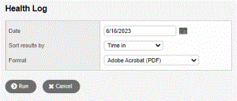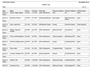 Run the Health Log report to view a list of student visits to the health office for a specific date: