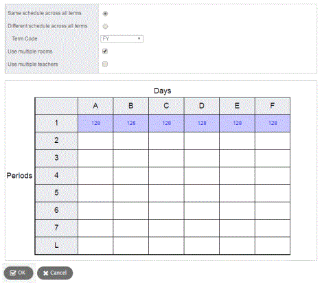 - Repeat steps 5 through 7 to schedule a room for each day/period the section meets.