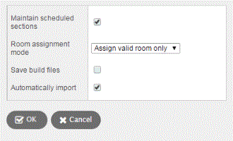 • Assign best available room: When a valid room cannot be found for a section, the scheduler assigns a room based on the list of constraints that are set to be relaxed. The build stops if a room cannot be found after easing constraints.