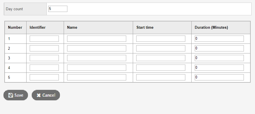 - For each day, type an identifier in the Identifier column.