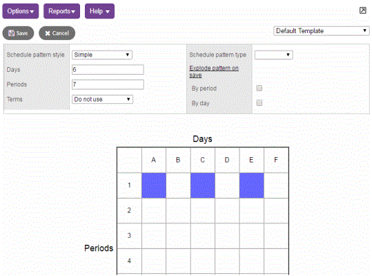 • Simple. Use simple patterns to create patterns for courses that meet on a fixed schedule of days and periods during a cycle. For example, courses that meet first period everyday.