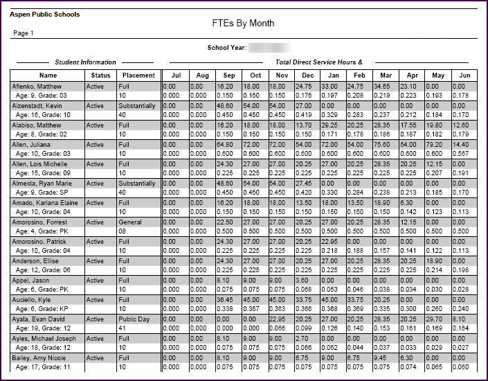 Aspen uses the frequencies, durations, and days per cycle you define for services on a student’s IEP to calculate monthly FTEClosed full-time equivalent numbers for students in the special education  program.