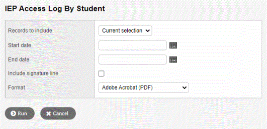 To run the IEP Access Log by Student report: