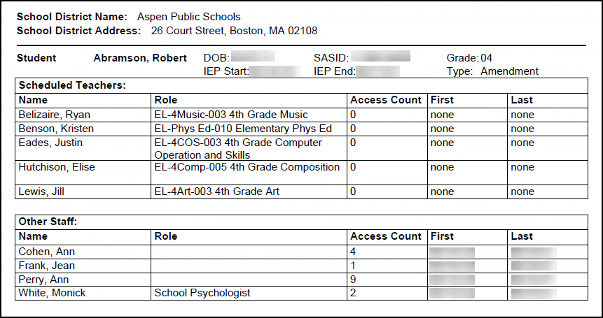IEP Access Log by Student report.