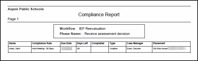 Run the Workflow Compliance report to view a list of workflows that have compliance rules which determine the time period a phase must be completed in order to remain compliant.