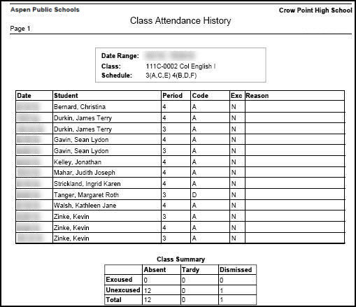 To run the Class Attendance History report: