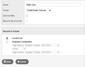 2. If you would like this snapshot to be your default filter (for example, whenever you open the Student List, these are the records you'd like to see), select the Move to top of my list checkbox.