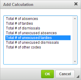 Select this checkbox to exclude from your criteria any instances of that row’s attendance code that were excused by a teacher or staff member.