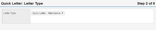 On any student list page, click and select Create Quick Letter. The six-step Quick Letter wizard appears.