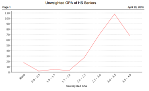 Crow Point High School principal Michael Rogers wants a line chart for a visual representation of the unweighted GPA of seniors.