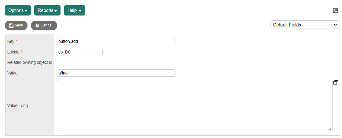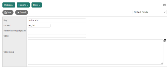 1. In the Value field, type the translation of the English Value field text. This is the text that appears in the UI or in system messages.