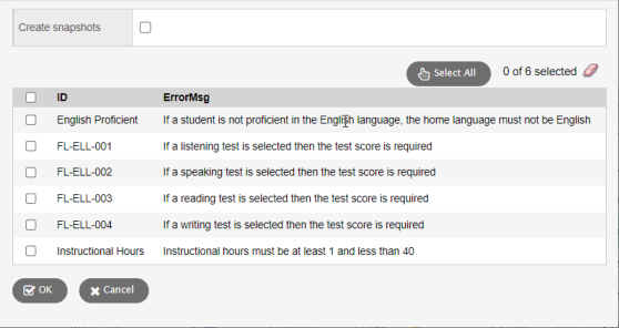 3. Click OK. The list page displays the records that fail all validation rules that were run.